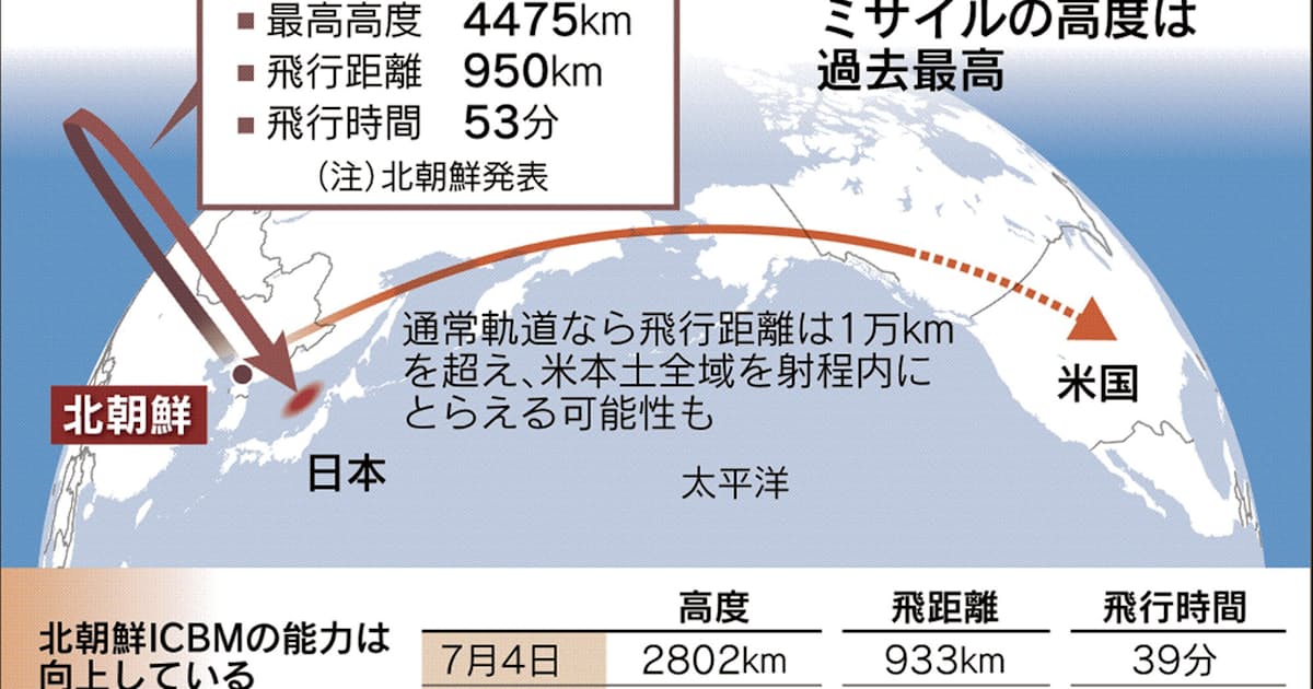 北朝鮮ミサイル 飛距離最長4600キロ 日本上空通過 日本経済新聞